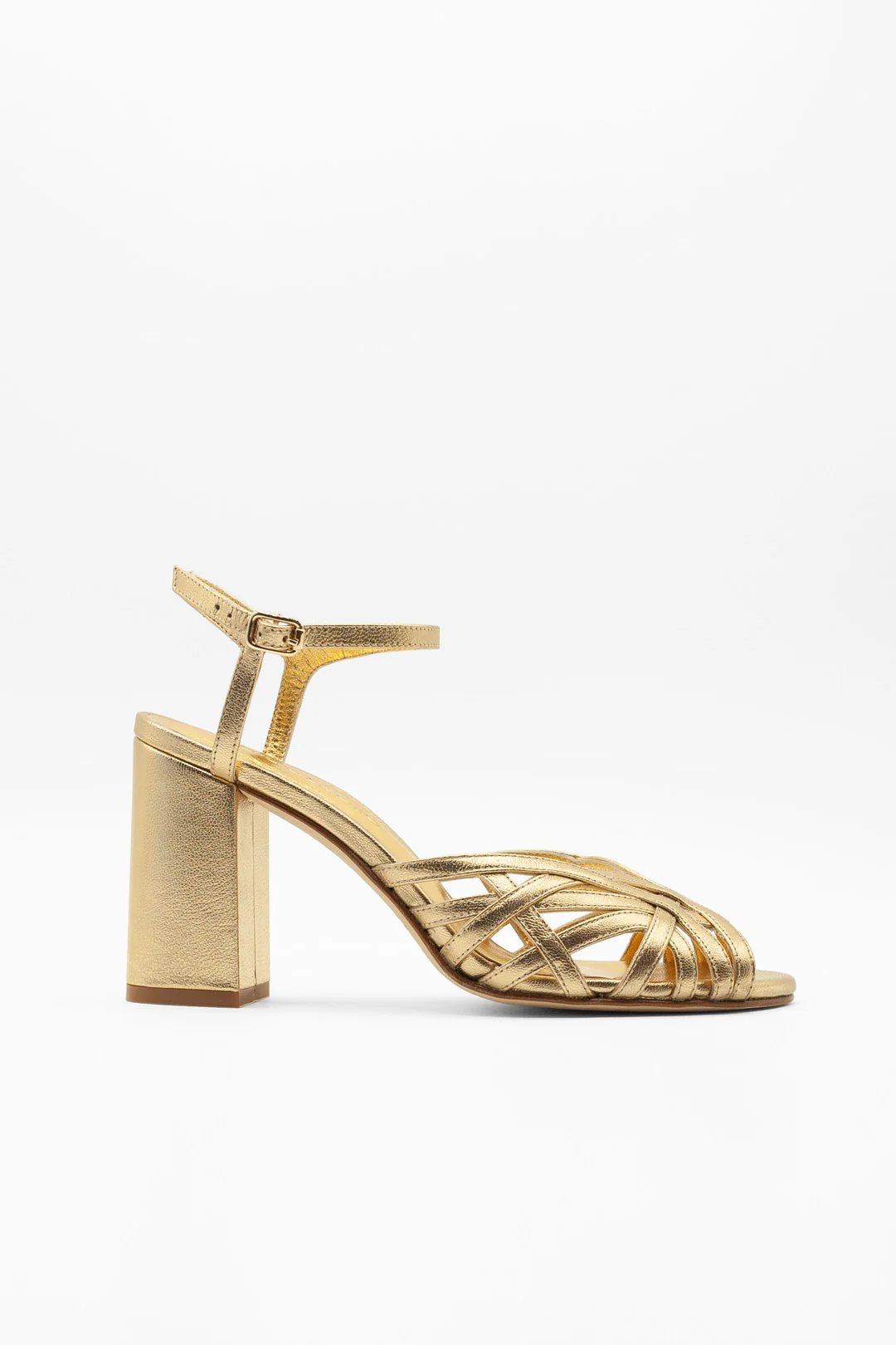 Sandalias doradas de piel para mujer, diseñadas para novias e invitadas. Fabricadas artesanalmente 100% en España, combinan estilo, comodidad y elegancia. Perfectas como zapatos de fiesta, tacones elegantes para bodas y eventos especiales.