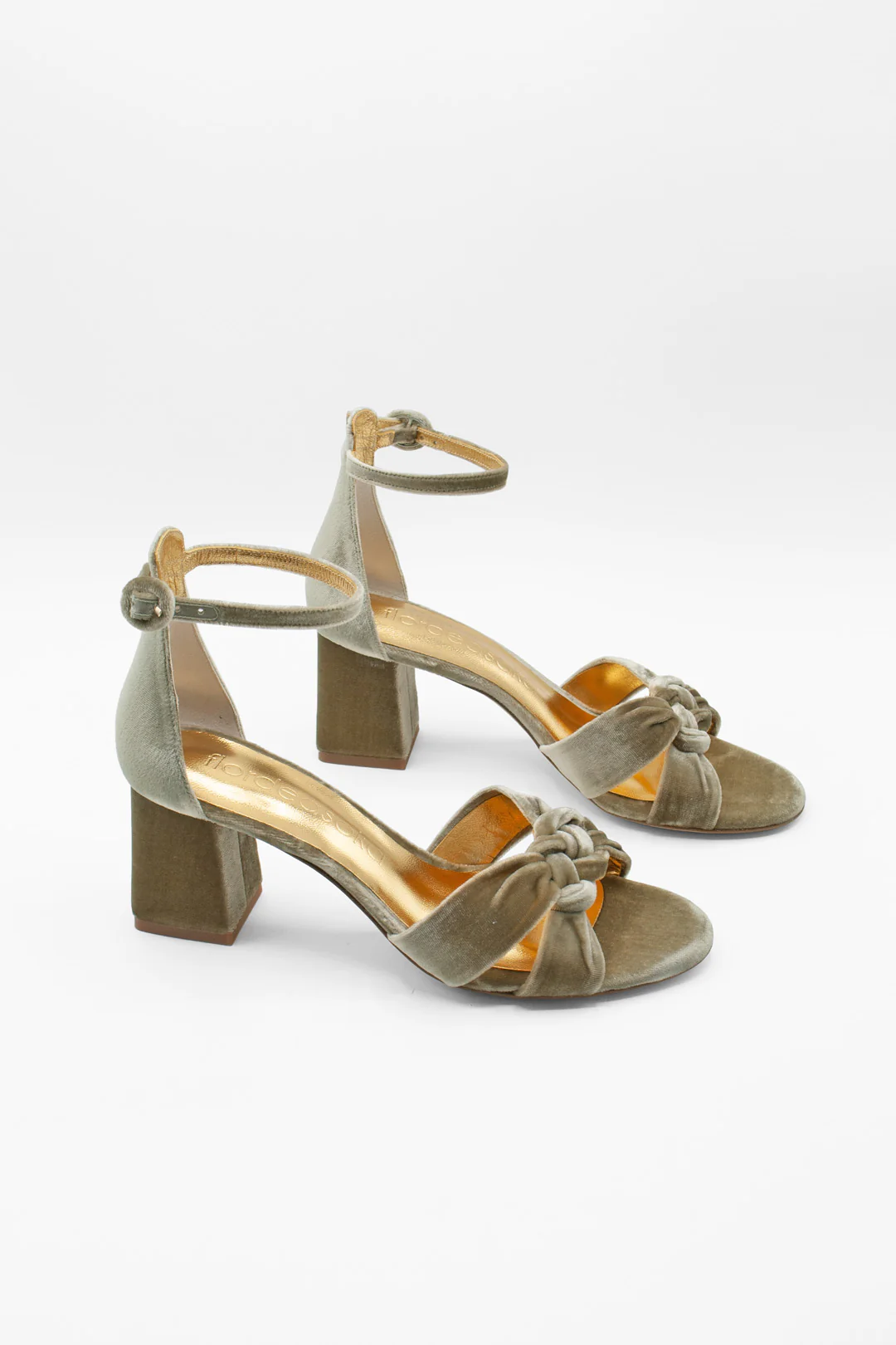 Sandalia con nudo en terciopelo verde. Su diseño envolvente y estructurado la convierten en una opción elegante y con presencia, perfecta para novias o invitadas que buscan el toque perfecto de color.