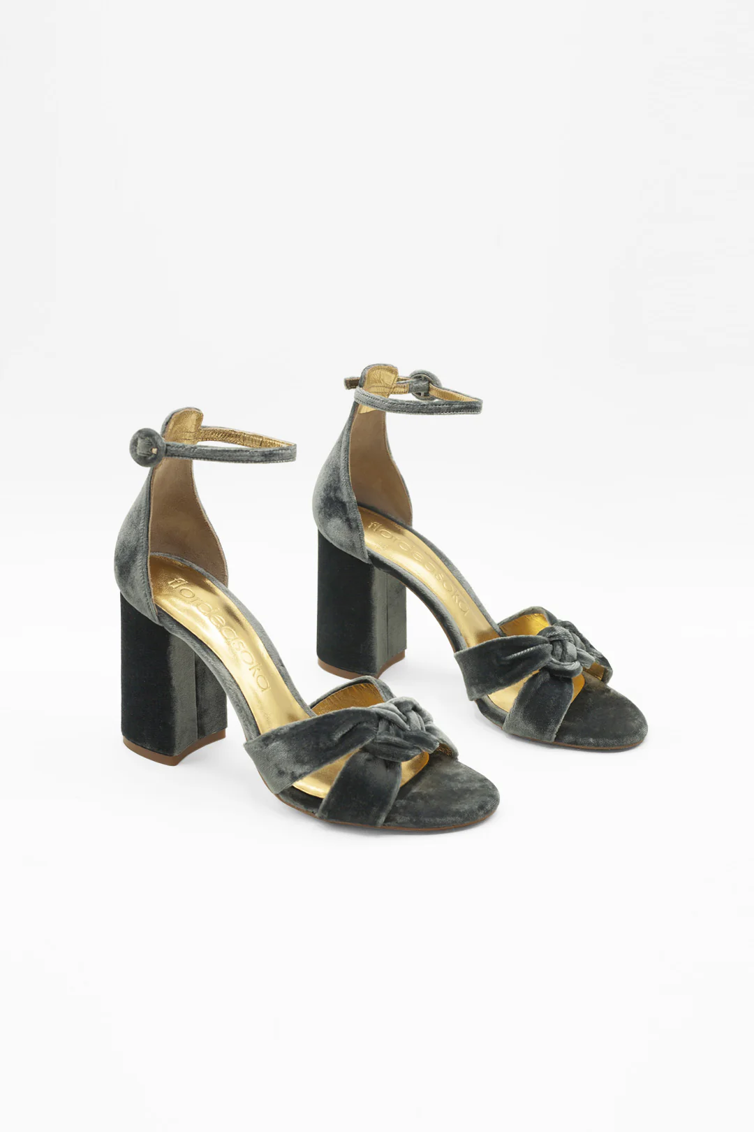 Sandalias de terciopelo en color azul con detalle nudo, un tono de azul vibrante con matices joya que ilumina cualquier look.